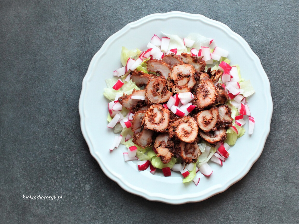 Wystudzone roladki pokrój w cienkie plasterki i ułóż na talerzu w towarzystwie świeżych warzyw.